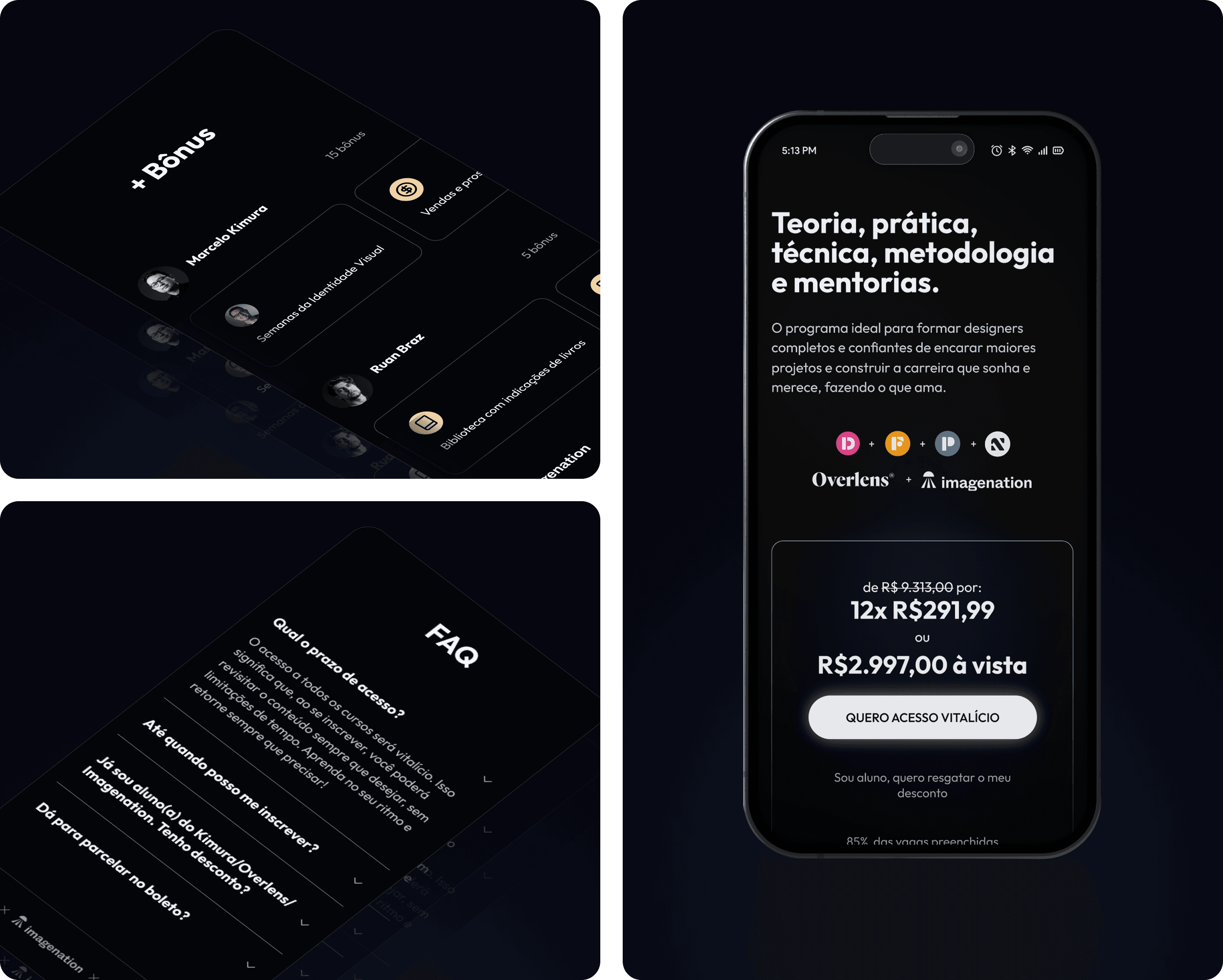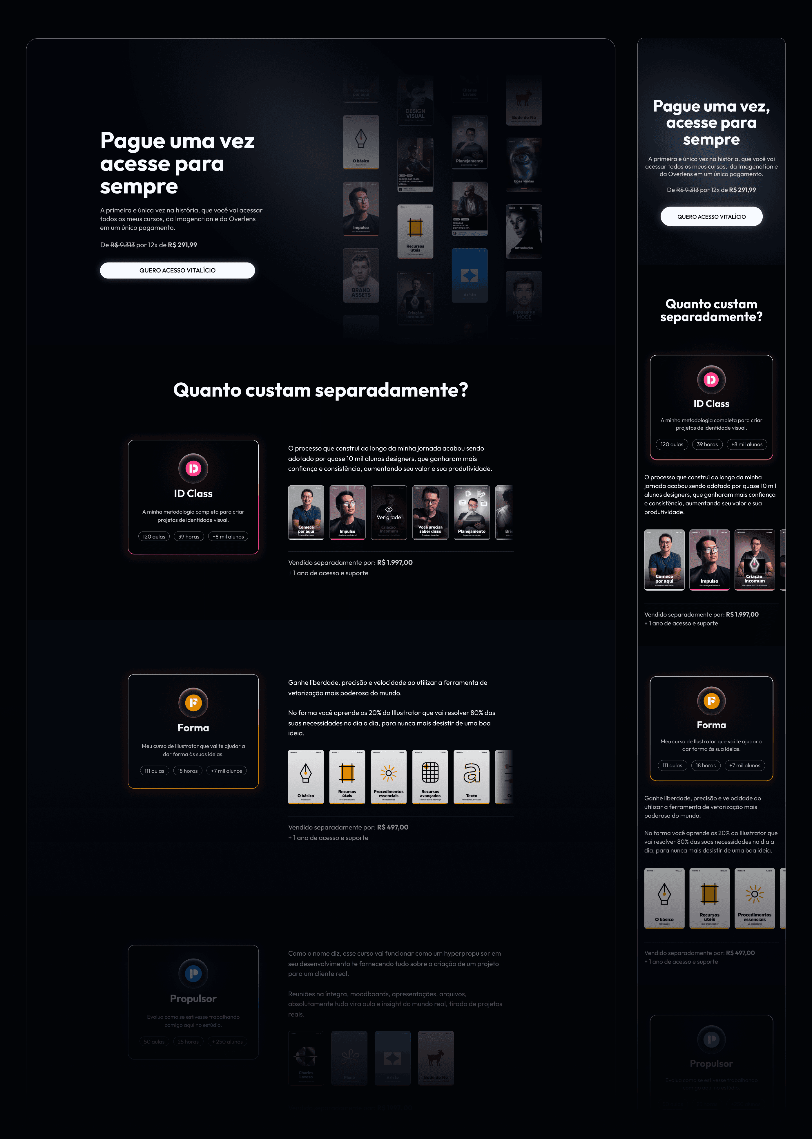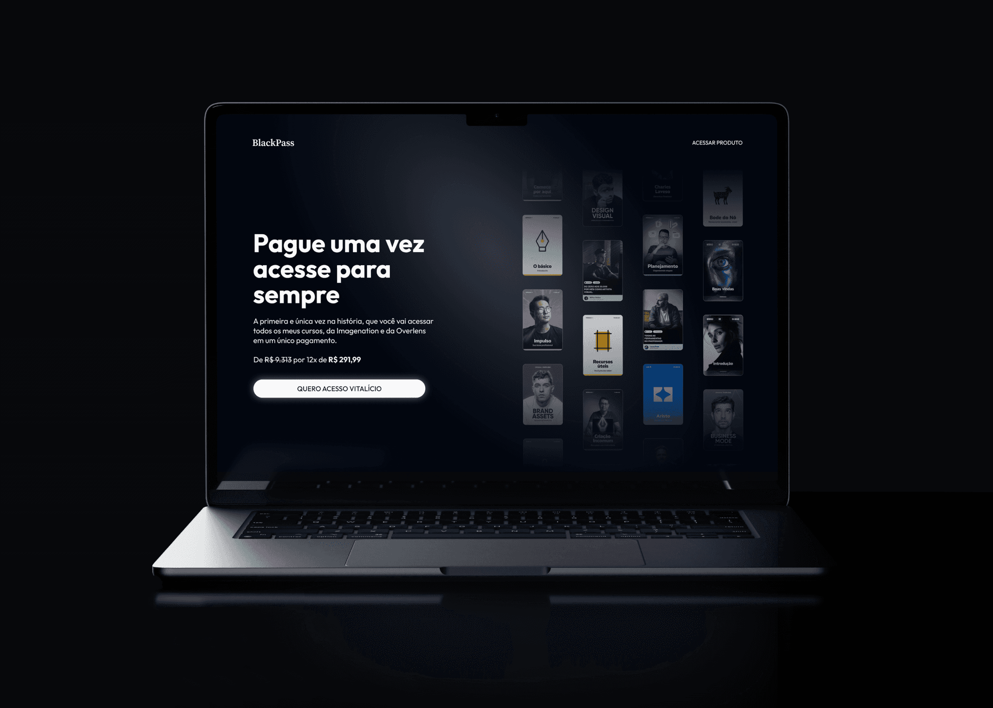 Redesign do Website da Black Pass, um conjunto exclusivo de cursos de formação em design, criatividade e inteligência artificial, criado apartir da união das expertises de Marcelo Kimura e Ruan Braz.